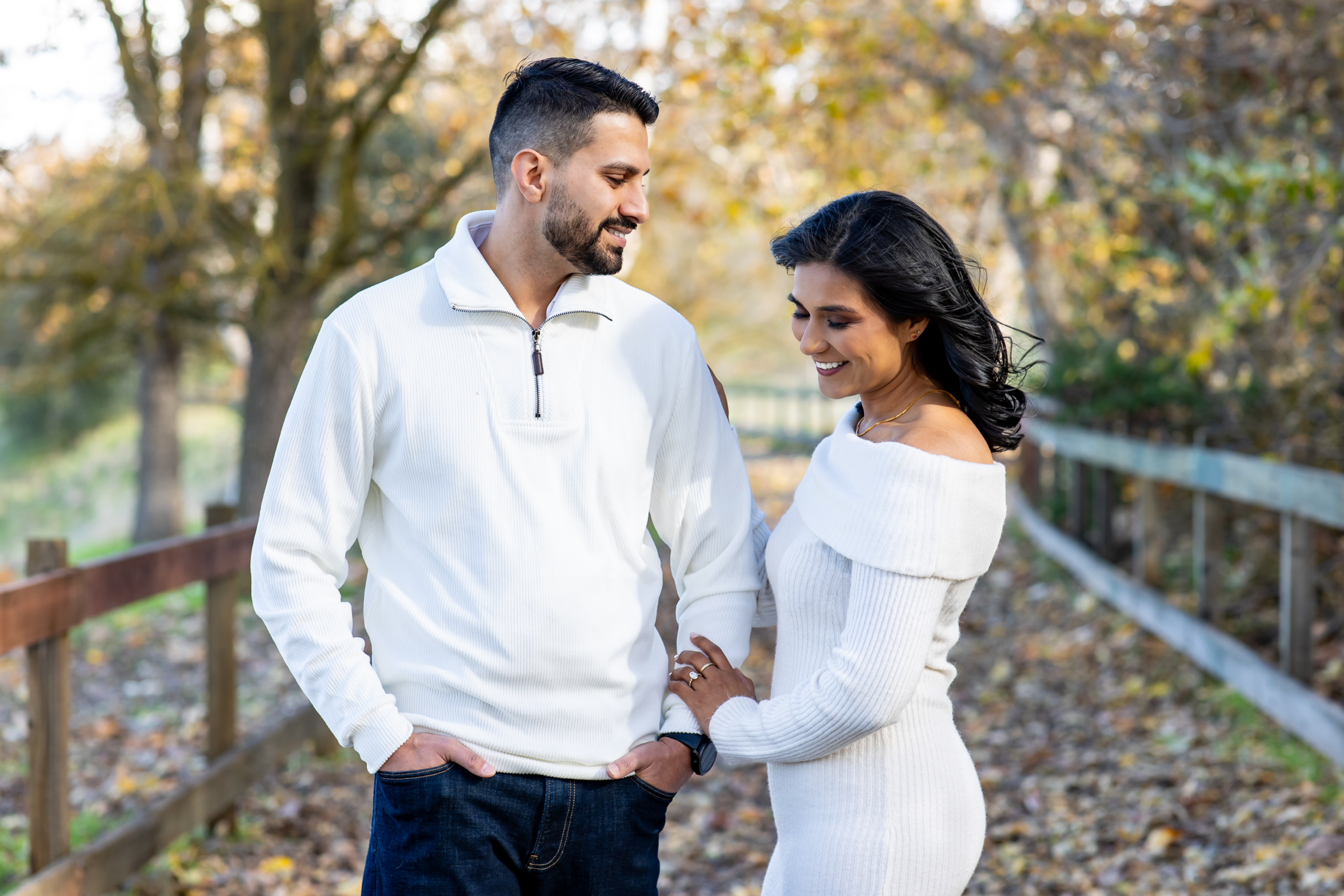 The warmth of their connection was the perfect match for the golden light and crisp leaves of our session! We spent a beautiful afternoon with Sahil & Alejandra capturing their pre-wedding story right here in the heart of the Central Valley. This engagement shoot was filled with laughter, cozy style, and a special appearance by their Boxer, showcasing the beautiful, natural aesthetic we bring to every couple’s journey.